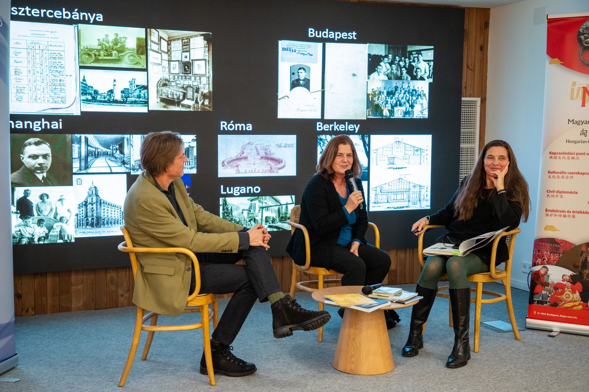 Itt az Időtlen Modernitás c. kiállítás és volt kerekasztal beszélgetés is már a China Cultural Center in Budapest elegáns épületében! Hudec László és sanghaji magyar kortársai, Gonda Károly, Mátrai Béla és Sömjén Rudolf együttesen a mai városkép majd 100 épületének a tervezői. A kiállításon szereplő archív másolatokból, eredeti dokumentumokból, interjúkból és az interaktív képernyőt használva megismerhetjük kalandos életútjaikat, emblematikus épületeiket és a korabeli Sanghaj metropolisszá válását. A kiállítás főszervezője, a Magyar-Kínai Baráti Társaság. Büszkék vagyunk, hogy szakmai partnerként is hozzájárulhattunk a kiállítás megvalósuláshoz. Igazán nagy élmény volt, hogy két leszármazott, akik még találkozhattak az építészekkel személyesen is jelen voltak: Sömjén Rudolf fia, Giora Sömjén és Hudec László unokahúga, Dr Jánossy Eszter. A kiállítás nyitva február 6-ig! Cím: 1143 Budapest, Stefánia út 77. Nyitvatartás: kedd-szombat: 10:00-12:00 és 13:30-17:00, vasárnap és hétfőn zárva (Az utcai bejáratnál csengetni kell és a hátsó udvar felől megközelíthető az épület bejárata) A Hudec Kulturális Alapítvány nevében a megnyitón köszöntőt mondott Csejdy Virág “10000 km-re innen keletre, 107 évvel ezelőtt indult el ez a történet. Felemelő érzés kimondani ezeket a számokat és átélni ezeket a tér és időbeli távolságokat a valóságban. Szerencsés vagyok, hogy Sanghajban láthattam azt az építészeti hagyatékot, amit Hudec László, Gonda Károly, Mátrai Béla és Sömjén Rudolf teremtett. A Hudec Kulturális Alapítvány alapítójaként és a budapesti Hudec rokonság tagjaként volt lehetőségem ezt a távolságot többször is megtapasztalni. Az alapítvány története 2008-ban indult, egy régi, budai villalakásban, Dr. Jánossy Eszterék otthonában. Ott kezdtük el kipakolni a szekrények mélyén lapuló családi hagyatékot és döbbentünk rá, hogy micsoda kincseket őrzött meg az utókornak dédnagyanyám, Hugyecz Jolán, Eszter édesanyja. Azóta ezekből a kincsekből kiállítások, publikációk, dokumentumfilmek, együttműködések és még barátságok és születtek itt Magyarországon és Sanghajban egyaránt. És milyen örömteli, hogy ez a történet nem ért végett, sőt bővül és színesedik, ahogy ez a kiállítás is mutatja. Mint az alapítvány vezetője és a hagyaték kutatója, célom, hogy a megőrzött archívum és általa Hudec világtörténelemmel átitatott életútja és páratlan építészeti munkássága új együttműködésekre és az eddigi kapcsolatok bővítésére adjon lehetőséget a két kultúra, a két ország között, áthidalva a 10000 kilométernyi távolságot.”